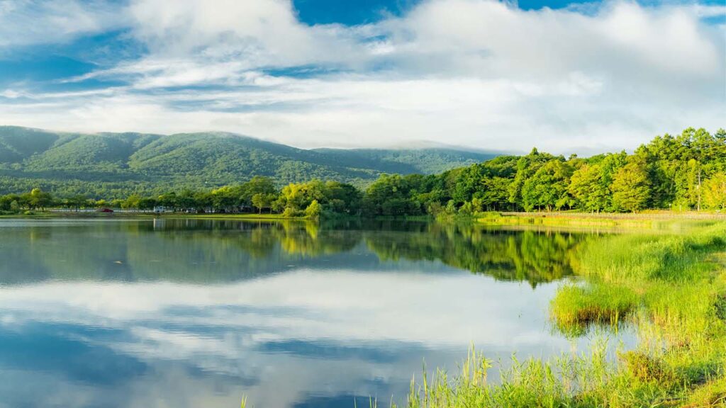 富士山に最も近い湖・山中湖の自然と調和するように、
